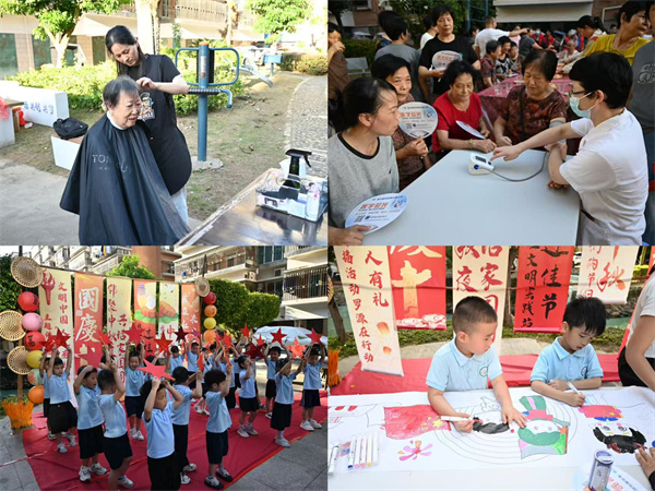 活动通过“党建+文化”“党建+服务”“党建+治理”等形式,将党组织的温暖传递到群众心中。业委会主任率先宣读积分倡议书,动员居民共建美好家园;“水滴”党员服务队现场开展用水知识宣讲,引导居民线上办理业务,推广24小时服务热线96396。居民欢聚长桌宴,品月饼、话家常;义诊、义剪、眼疾筛查温暖人心;猜灯谜、投乒乓球等游戏欢笑不断。现场气氛热烈,小朋友们的《红星闪闪》歌舞和国庆主题绘画,更添节日欢乐与祝福。
